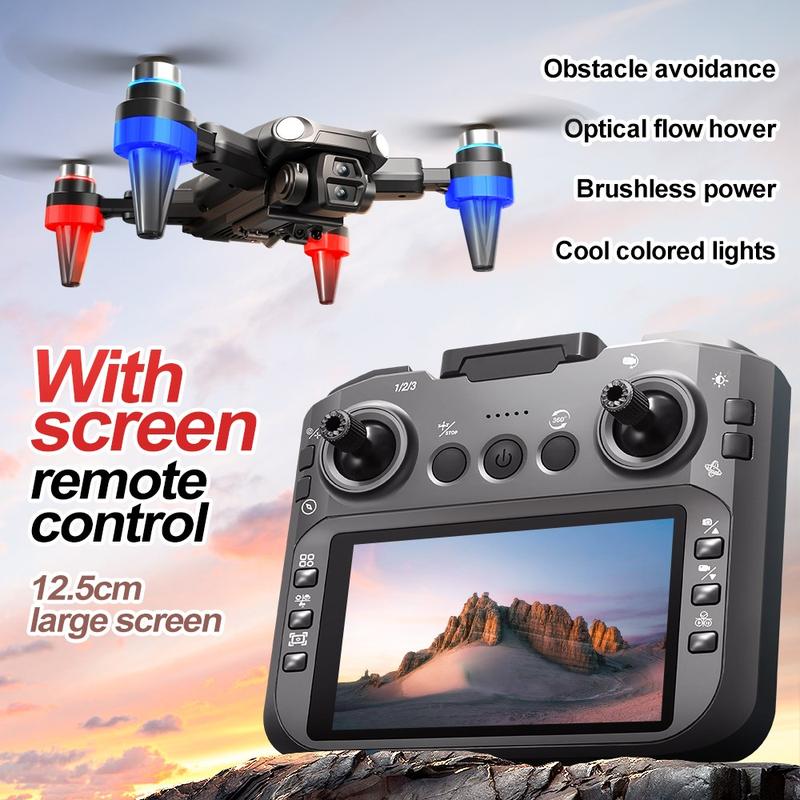 M9 Brushless Motor FPV Drone - Foldable Quadcopter with Dual HD Cameras, Optical Flow, Obstacle Avoidance, Screen Controller, and 3 Batteries