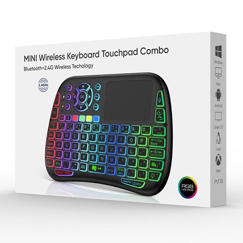 M9 Mini Wireless Keyboard with Touchpad & RGB Backlight - 2.4GHz USB/Bluetooth 5.0 Remote Keyboard for Smart TV, Android TV Box, PC