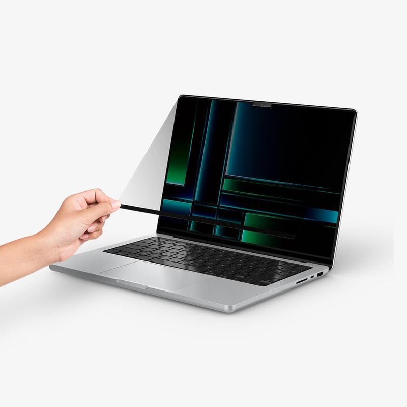 The Spigen SafeView magnetic privacy film for MacBook Pro 14" (2021–2025) is a slim, reusable privacy filter designed to keep your screen content discreet in public and shared spaces. Its adhesive-free magnetic mounting makes installation fast and bubble-free—simply place it on the display and it snaps into position. You get effective side-view protection while maintaining clear image quality and accurate colours, plus a precise cutout for the camera and sensors and a black frame that matches the MacBook’s design.