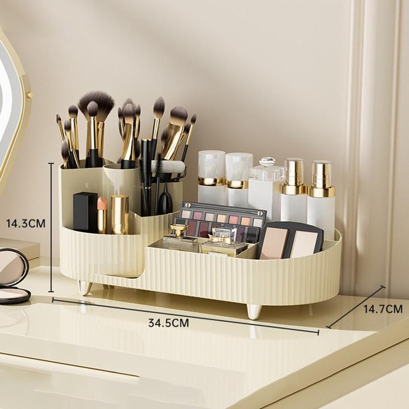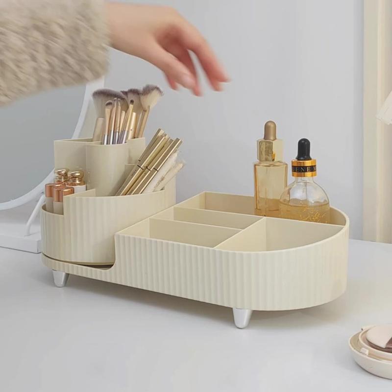 Makeup Organizer Storage Tray with Rotating Brush Holder - ABS+PET Cosmetic Rack for Dressing Table & Bathroom Counter