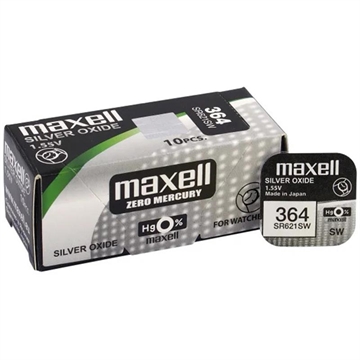 Power your watch reliably with the Maxell 364 / SR621SW silver oxide watch battery. Designed for watches and other compatible miniature electronic devices, this compact button cell delivers stable 1.55V output and dependable everyday performance. It is a practical replacement battery for users who want trusted quality, steady voltage, and a compact format suitable for precision devices.