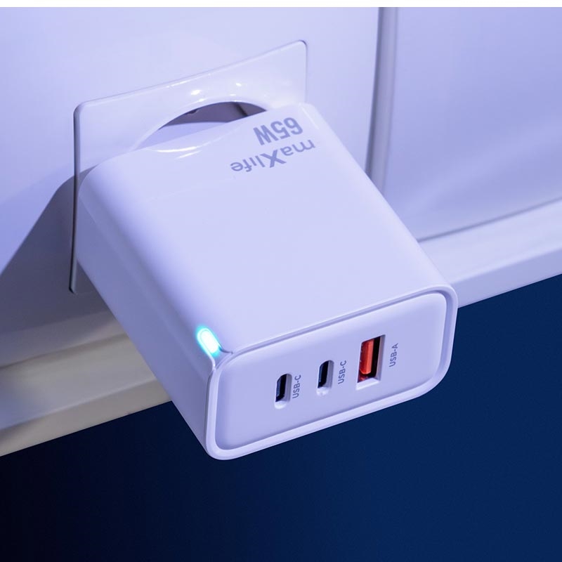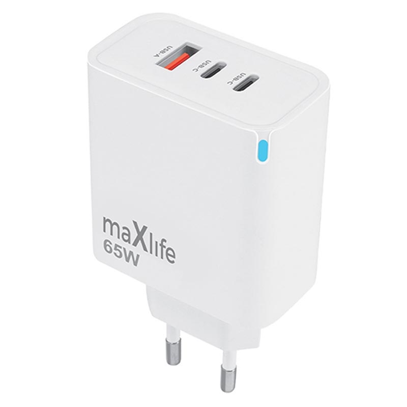 Maxlife MXTC-09-65ACC GaN Charger - 65W Fast Charging Adapter with 2× USB-C PD & 1× USB-A QC Ports