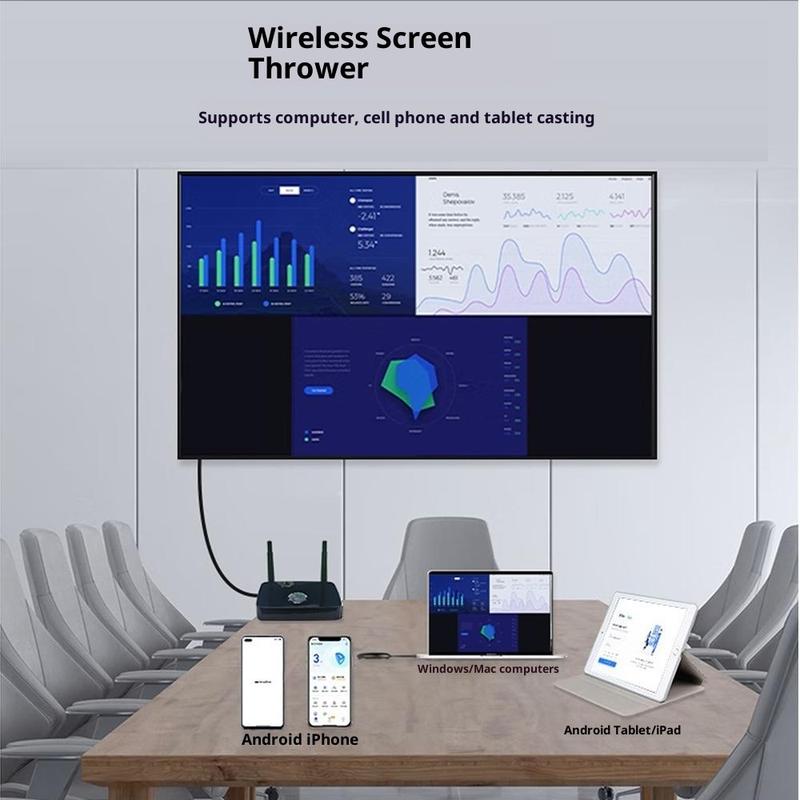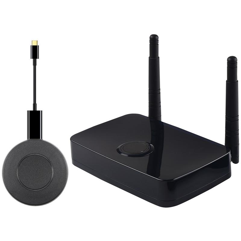- Wireless display kit includes 1 transmitter and 1 receiver for cable-free screen sharing.