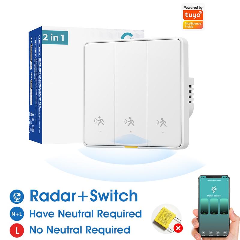 MG-KG126 Zigbee Radar Smart Switch / Human Sensor Wall Switch, Tuya-Enabled Remote Control - 3 Gang, 1 Way