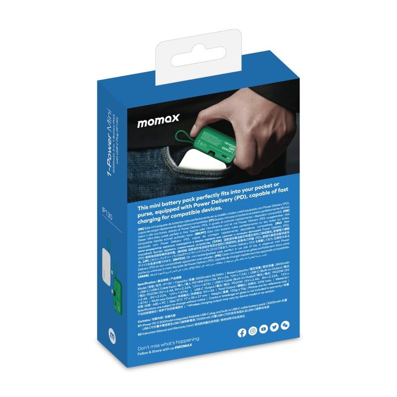 Momax 1-Power Mini Pop Art 5000mAh Power Bank / Portable Charger with USB-C Plug, USB-C Cable, USB-C Port - 20W