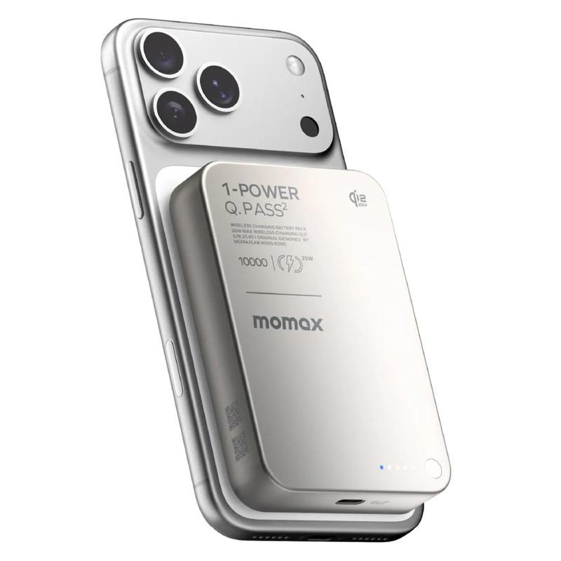Momax 1-Power Q.Pass2 Qi2.2 25W Magnetic Wireless Power Bank 10000mAh - USB-C PD 30W, Snap-On Charging for iPhone 12-17 Series