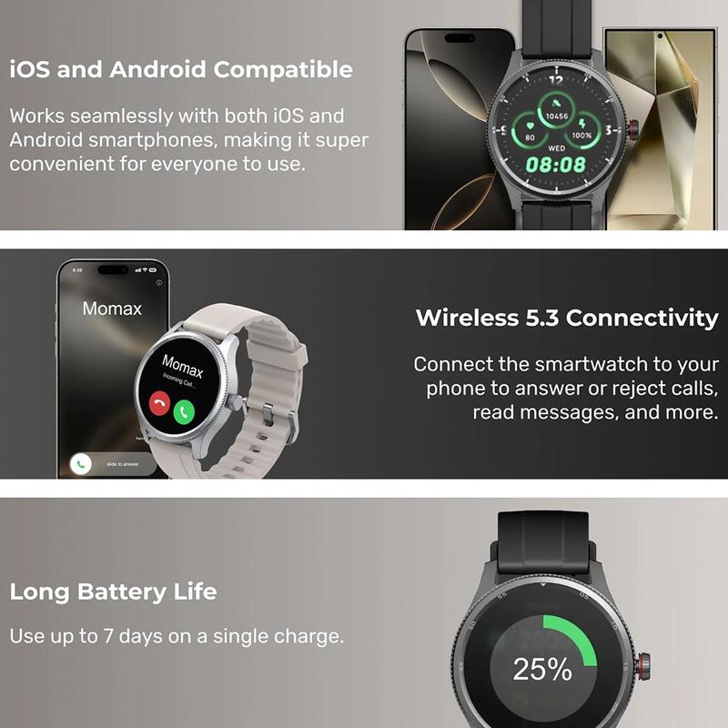 The MOMAX 1-Wear is a strong all-rounder if you want health insights, activity tracking, and everyday connectivity in a watch that s comfortable and easy to live with. You get a feature-rich experience—100+ sport modes, AI sleep analysis, and IP68 protection—without the hassle of charging every night, making it a practical choice for both fitness-focused users and anyone who wants simple wellness tracking.