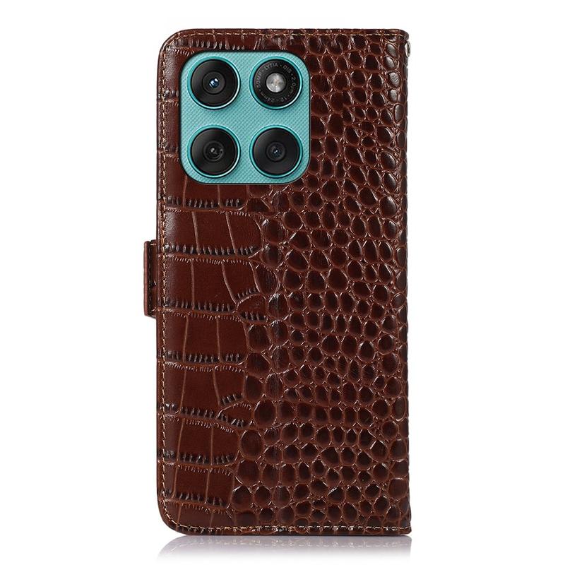 A lightweight and soft wallet case with a unique crocodile texture, the perfect choice to protect your Motorola Edge 60 Fusion and keep it undamaged. It's made of high-quality genuine leather and inner TPU material, designed with three card slots, an ID slot, and a pocket for cash, ideal for carrying your essentials next to your Motorola Edge 60 Fusion. Also, RFID technology effectively blocks signals and keep's your data secured.
