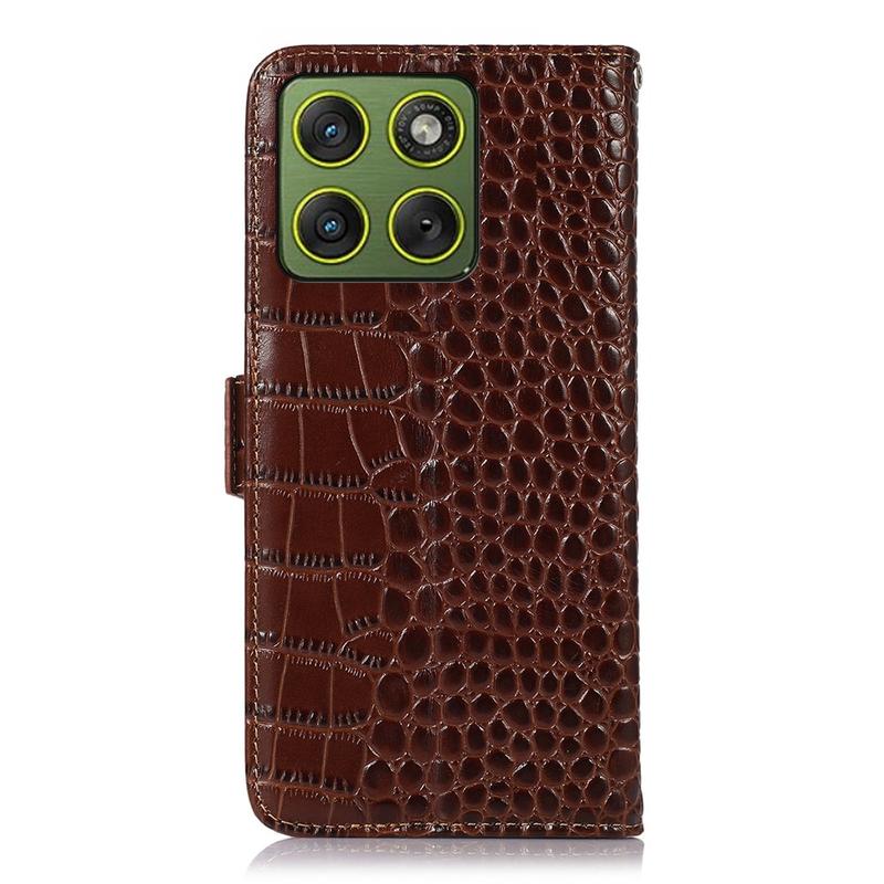 A lightweight and soft wallet case with a unique crocodile texture, the perfect choice to protect your Motorola Edge 70 and keep it undamaged. It's made of high-quality genuine leather and inner TPU material, designed with three card slots, an ID slot, and a pocket for cash, ideal for carrying your essentials next to your Motorola Edge 70. Also, RFID technology effectively blocks signals and keep's your data secured.