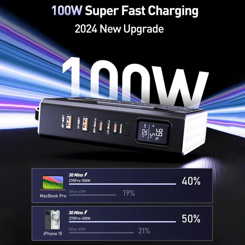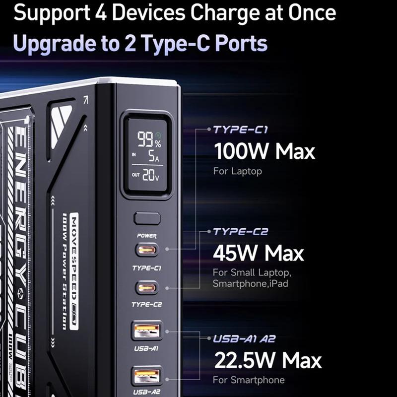 - 100 W Fast Charging Output – Supports PD 100 W and 22.5 W fast-charge protocols, delivering laptop-level charging speeds for multiple devices simultaneously.