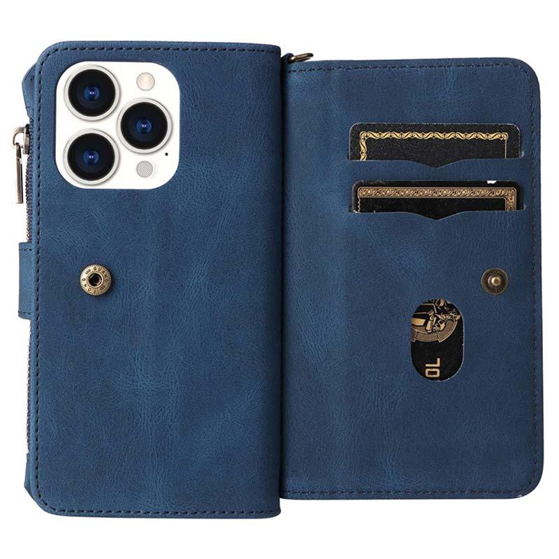 Keep your valuables right with your iPhone 14 Pro Max with this multipurpose wallet case. Multiple slots and one zipper pocket allow you to store cards, documents, and some cash, while the included strap prevents accidental drops. This stylish wallet case represents excellent protection for your iPhone 14 Pro Max from dust, scratches, and minor impacts.