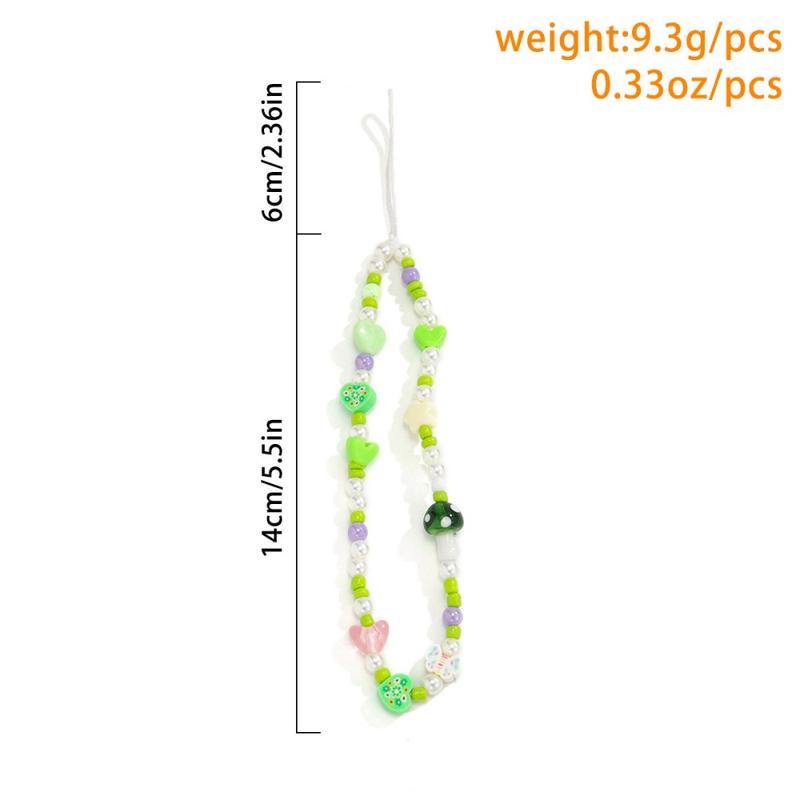 20cm Mushroom Pearl Beaded Phone Lanyard - Acrylic Wrist Strap Chain Mobile Accessory