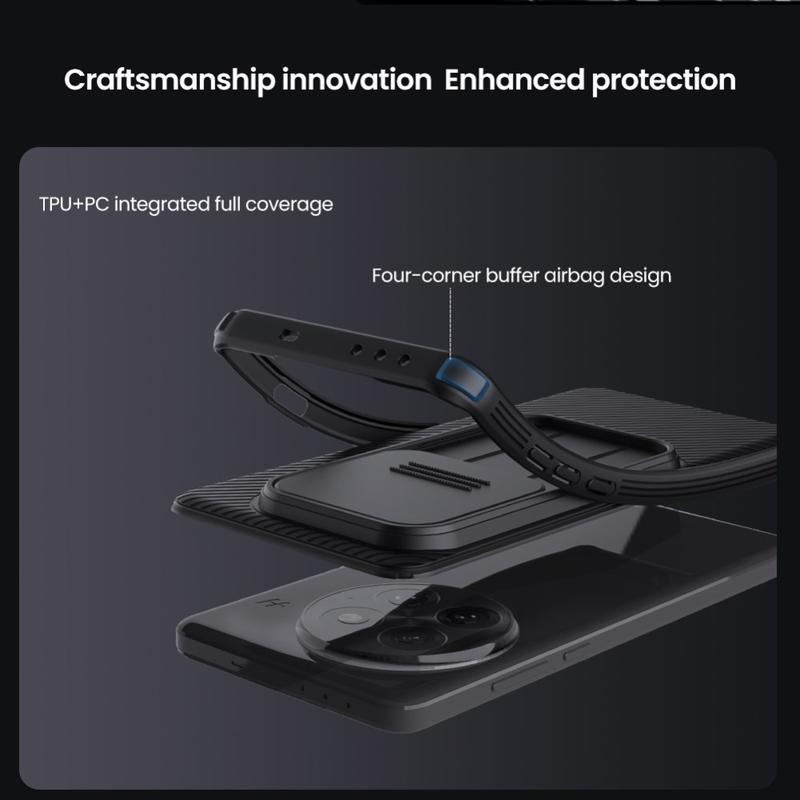 Enjoy extra privacy and protection with the Nillkin CamShield Pro hybrid case. Combining rigid plastic and TPU, the camera cover prevents scratches while defending your OnePlus 13 from daily wear and tear.