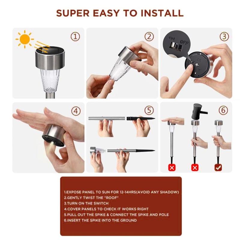 Outdoor Decorative Waterproof Anti-Deform Stainless Steel Brightest Solar Lights - 12 Pcs.
