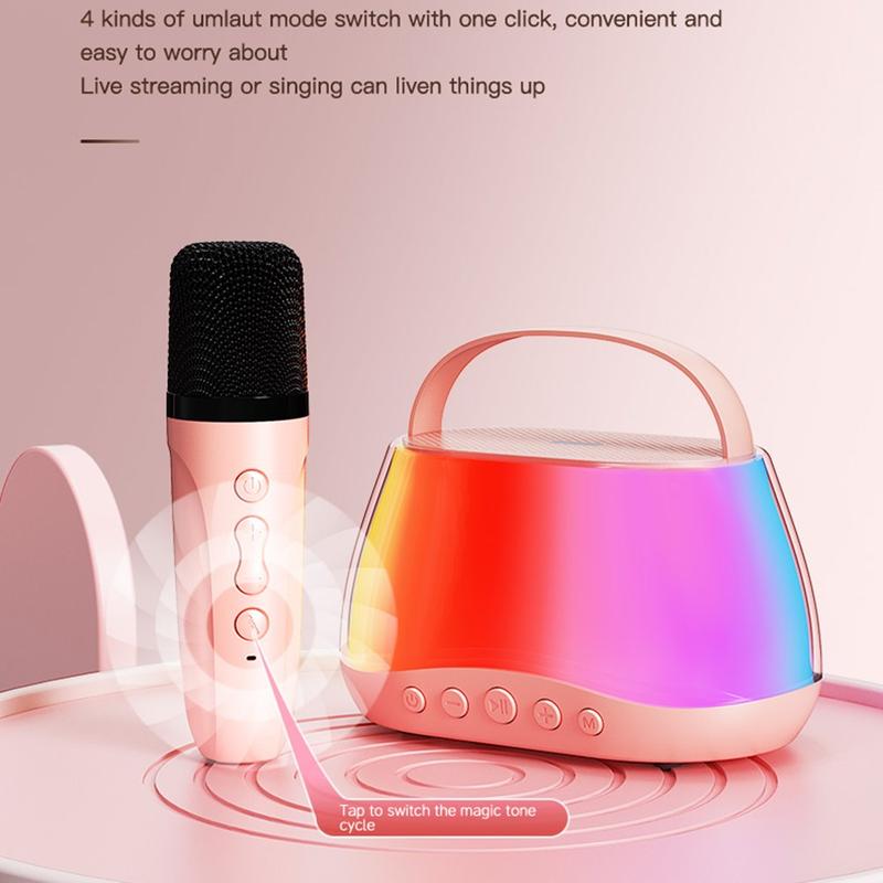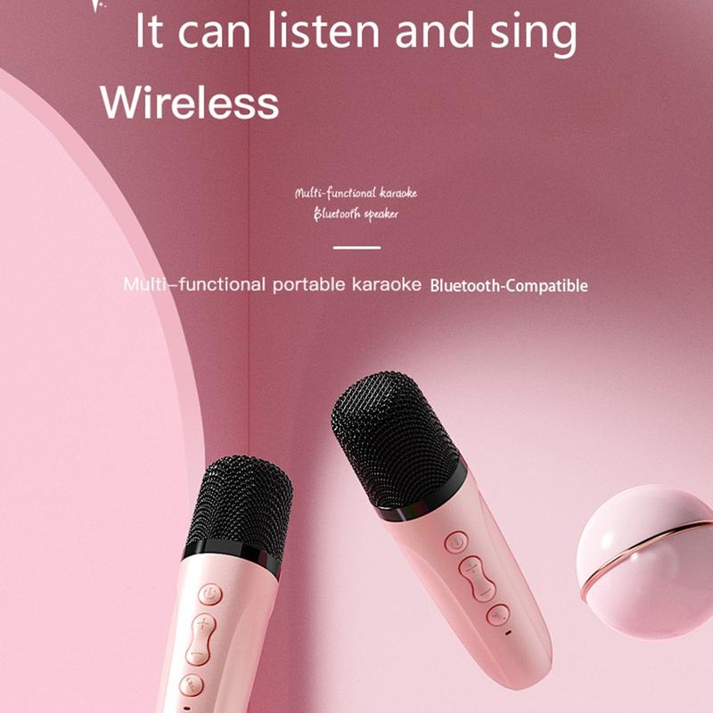 - All-in-One Portable Karaoke Setup – Combines a wireless Bluetooth speaker and two microphones in one convenient set for instant sing-alongs anytime, anywhere.