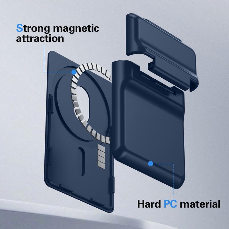 This magnetic card holder with kickstand is a sleek and practical accessory designed for iPhone 12-17 series devices. Built from durable hard PC material, it snaps securely onto the back of your phone using powerful magnetic absorption. It keeps your essential cards close at hand while adding hands-free viewing convenience, all in a slim, everyday-friendly design.