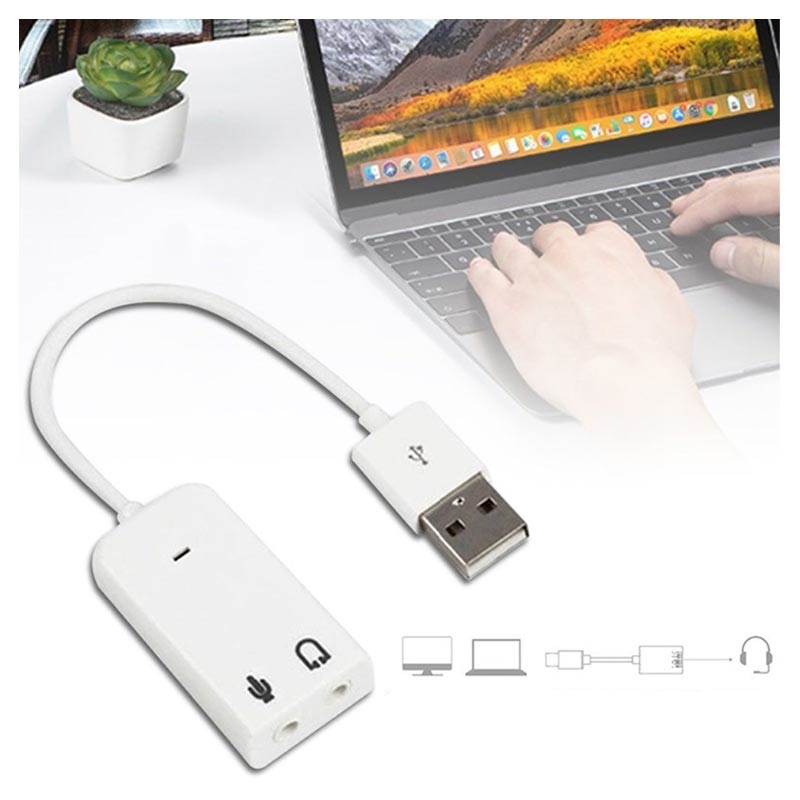 This external USB sound card lets you connect headphones or microphone to your computer or laptop. With USB interface, this external sound card will easily replace your faulty sound card or broken connector.