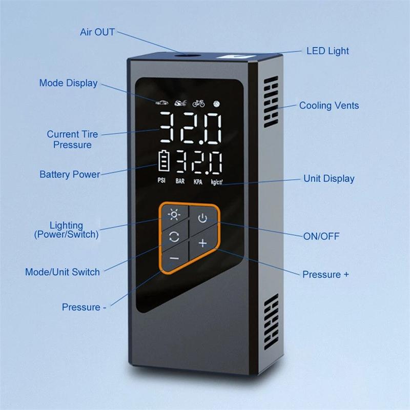 - Smart Digital Display - The clear LCD screen shows real-time tire pressure readings, ensuring accurate monitoring and control for safe inflation.
