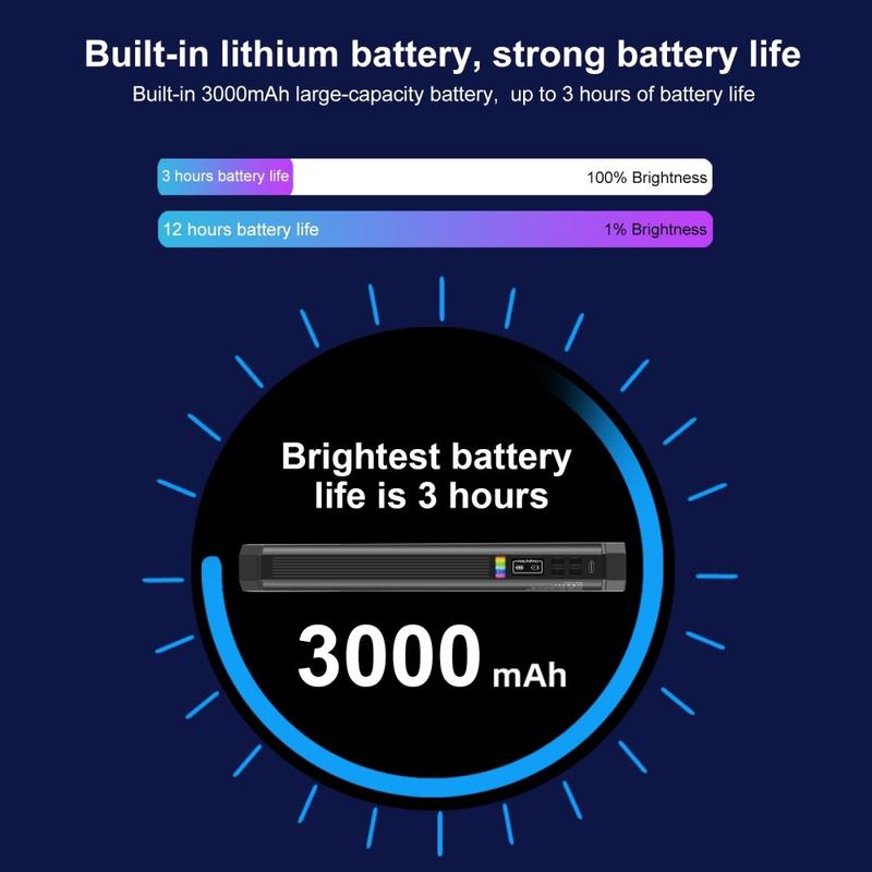 Create better photos and videos anywhere with the PULUZ PU4139 30cm RGB LED stick light. This portable tube light delivers adjustable brightness, full RGB color control, and a wide color temperature range for natural white light or creative effects. Built-in magnets let you attach it to metal surfaces for quick setups, and the 1/4 inch screw holes on both ends make it easy to mount on tripods, handles, or selfie sticks. With a large 3000 mAh battery and the ability to run while charging, it is ideal for creators who want flexible lighting on the go.