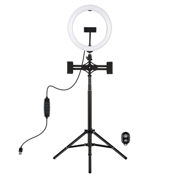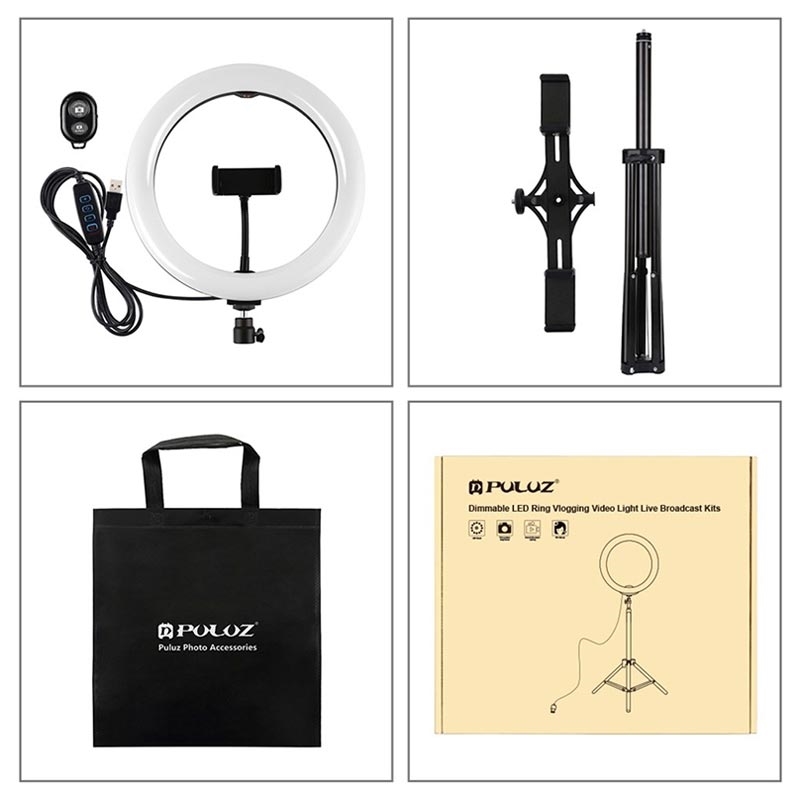 PULUZ PKT3066B 10.2" LED Selfie Ring Light Cell Phone Clamp Tripod Stand for YouTube Blogger Video Shooting
