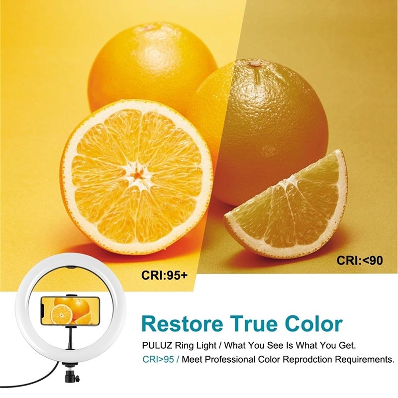 The ring light is made of 2x60pcs energy-saving LED beads, it heat dissipation is excellent, constant current drive and high color rendering, soften the light source and enhance skin tone in portraits photography