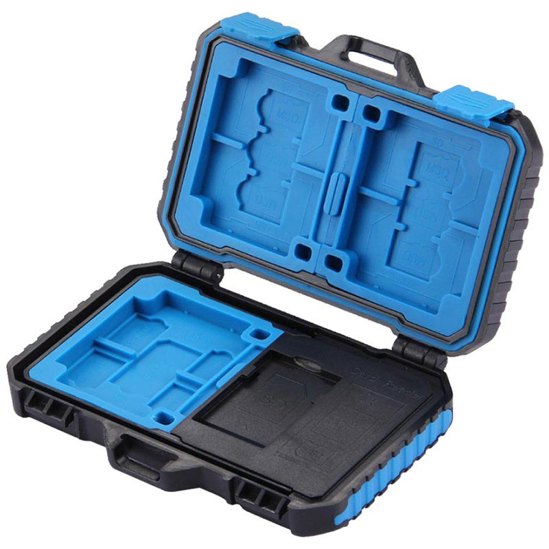 A card reader and storage box in one - this Puluz PU5004 allows you to carry up to 22 various SIM and memory cards and to connect them to your OTG-enabled smartphone, tablet, PC or laptop. Its lightweight and compact design allows you to carry it with you and have all your cards and reader at your fingertip. Tough, wear-resistant, and water-resistant plastic case protects your cards from damage. It comes with a microUSB 3.0 to USB 3.0 cable that has microUSB and Type-C attachments.