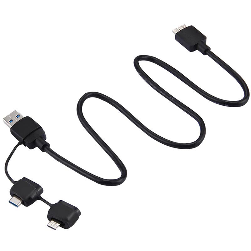 - Cable type: microUSB 3.0 to USB 3.0, microUSB 2.0 and Type-C