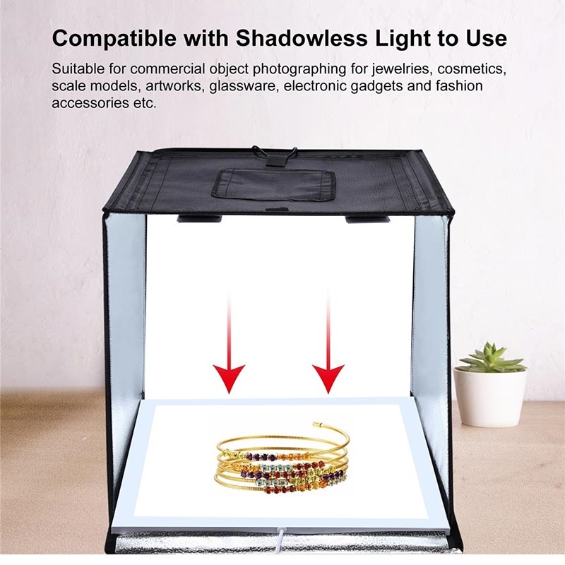 Comes with a carrying bag and 3 pieces of background paper boards (White, Orange, Black). The paper boards are wrinkle resistant and water resistant