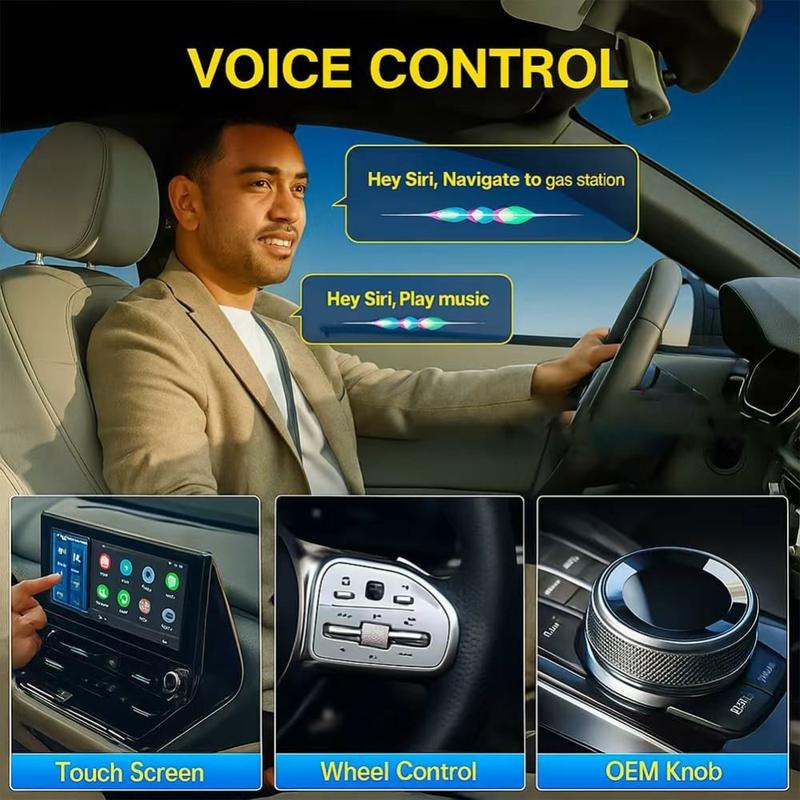 Compatible with all original car systems equipped with wired CarPlay, the Q1AS works with iPhone (iOS 18+), Android devices, and seamlessly integrates with your car’s touchscreen, buttons and built-in microphone.