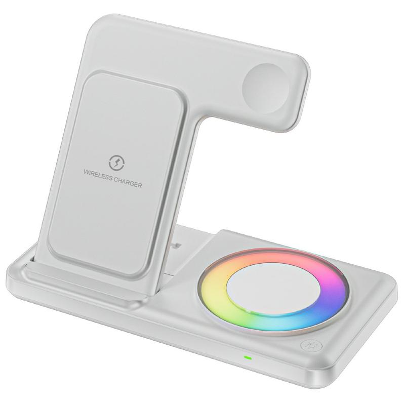 Q50D 4-in-1 Foldable Wireless Charger - 15W Fast Charging Station with RGB Ambient Light