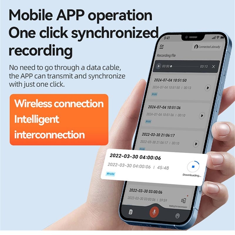 One-Touch Recording: Start recording instantly with a simple two-level button, perfect for quick notes or longer sessions.
