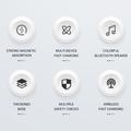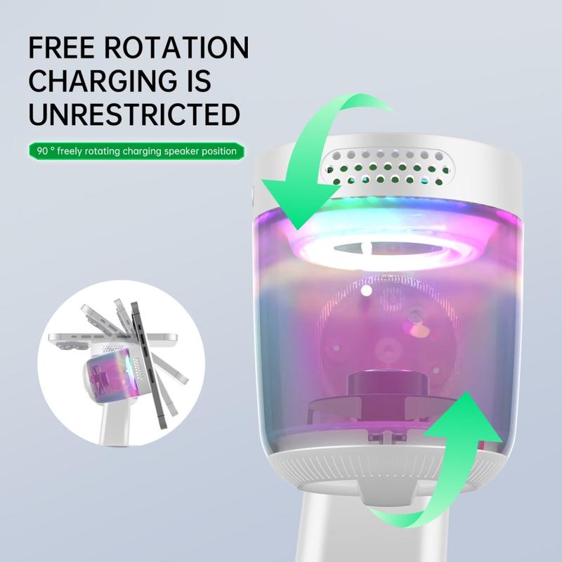 Eliminate cable clutter and power all your essentials in one place with the QI2.2 magnetic wireless charging station. Designed for modern desks and bedside tables, it combines a 25W magnetic wireless charger, Bluetooth speaker, and RGB ambient lighting, creating the ultimate multifunctional charging solution for your phone, earbuds, and smartwatch.
