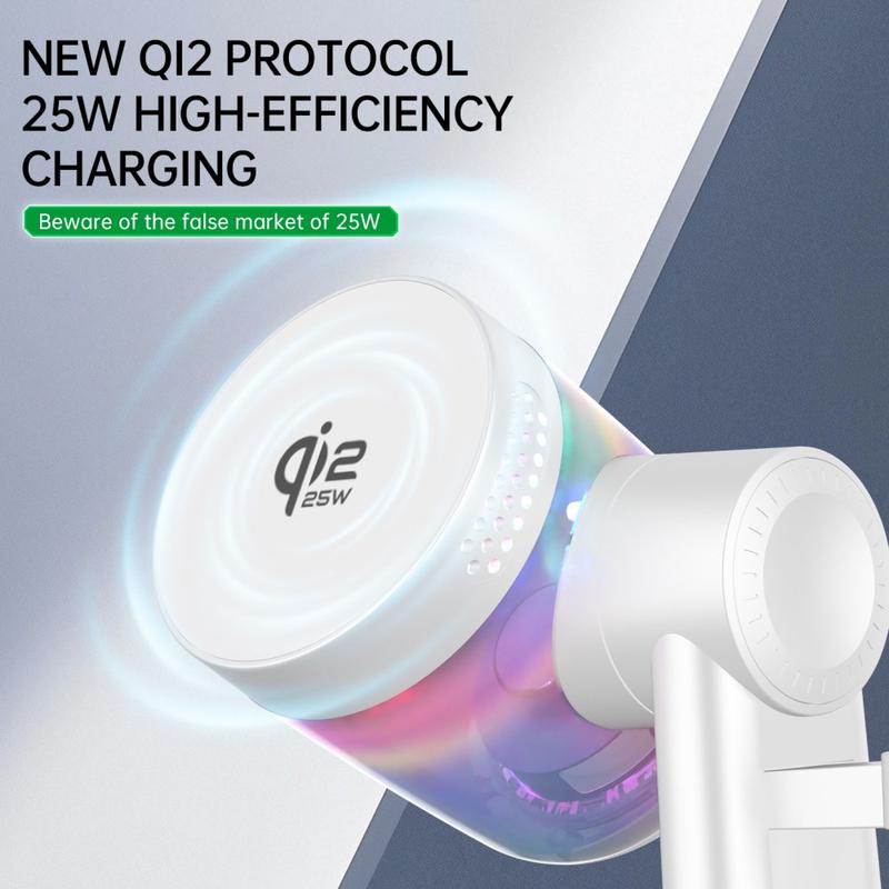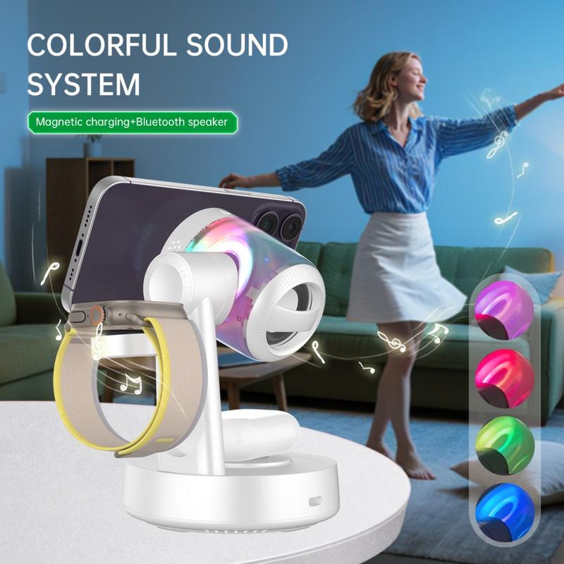 QI2.2 25W Magnetic Wireless Charging Station with Bluetooth Speaker & RGB Ambient Lighting - 3-in-1 Charger for Phone, Earbuds & Smartwatch