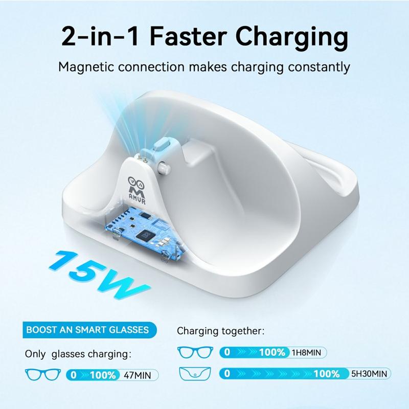 The AMVR CD3 provides effortless magnetic alignment, dual fast charging, real-time status feedback and strong safety protection—making it the ideal charging solution for Ray-Ban Meta AI Glasses users.