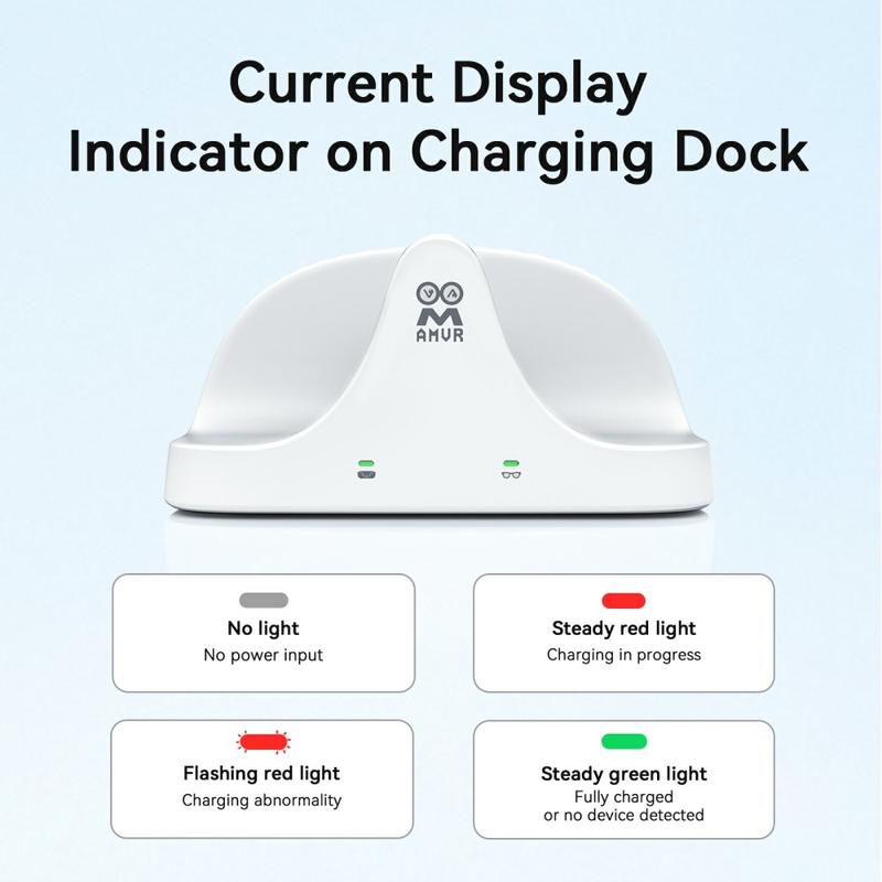 The dock also automatically stops charging when the glasses reach full power—protecting device health and extending battery lifespan.