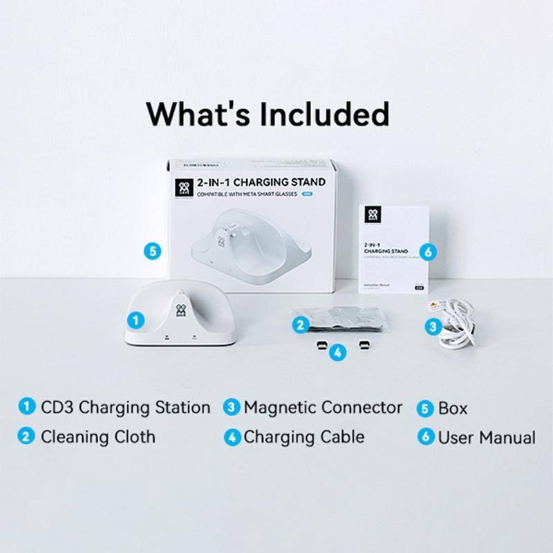 The AMVR CD3 Charging Dock is designed to power both your Ray-Ban Meta AI Glasses and their charging case at the same time. Enjoy efficient, simultaneous charging without swapping cables or ports.
