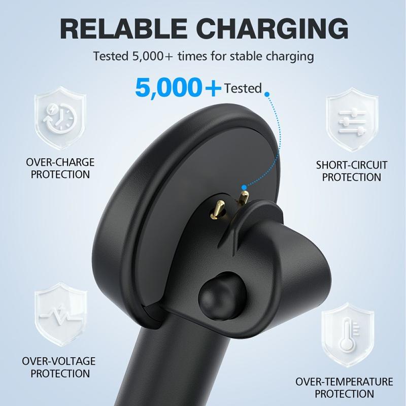 The base features non-slip pads to prevent movement during charging. These pads increase friction, protect surfaces and keep the dock stable and scratch-free.