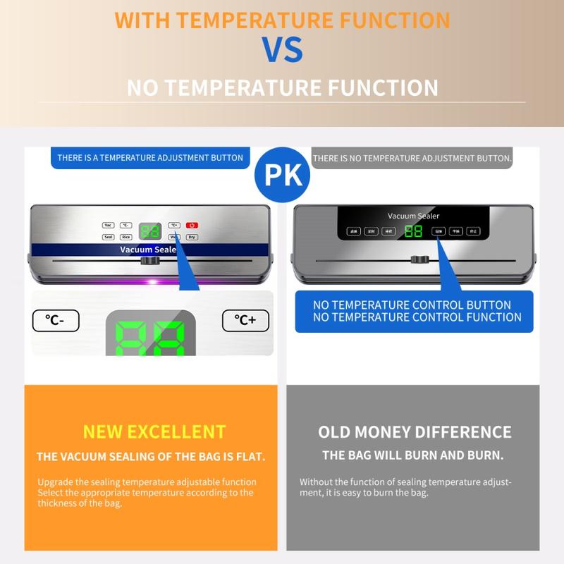 This sealer supports dry and wet modes, vacuum + seal, seal-only, and even external pumping, so you can preserve everything from snacks and coffee beans to marinated meats and soups (with the right bag handling). A waterproof touch screen and adjustable temperature control help you match the seal to different bag thicknesses for cleaner results without overheating. The built-in sliding cutter makes bag sizing easy, and detachable components help with quick cleaning after use.