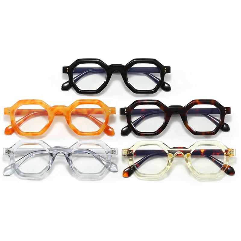 These retro polygon eyeglasses combine fashion-forward design with crucial eye protection against blue light. By alleviating discomfort associated with screen time, they help boost productivity, reduce headaches, and maintain visual clarity. Their lightweight construction and integrated nose pads also ensure hours of comfortable wear, making them a convenient addition to your daily life.