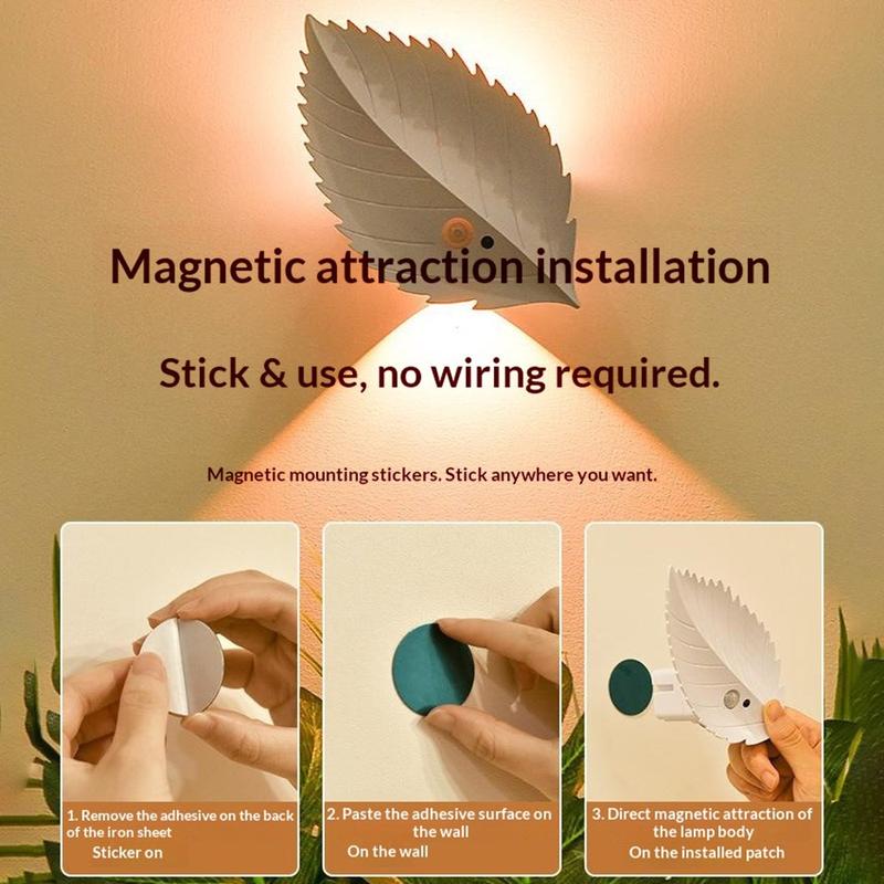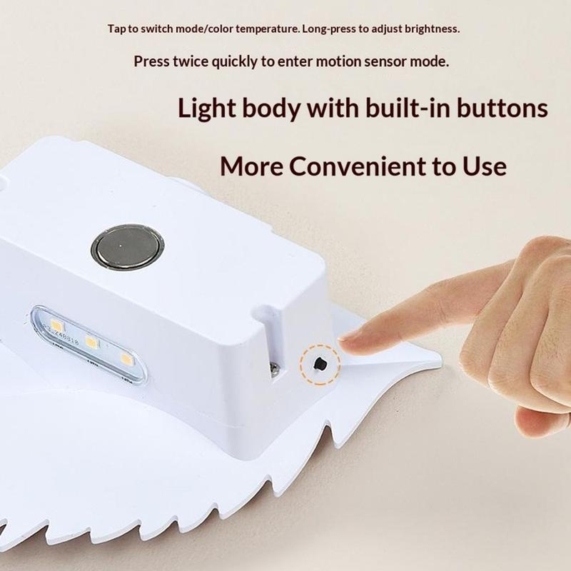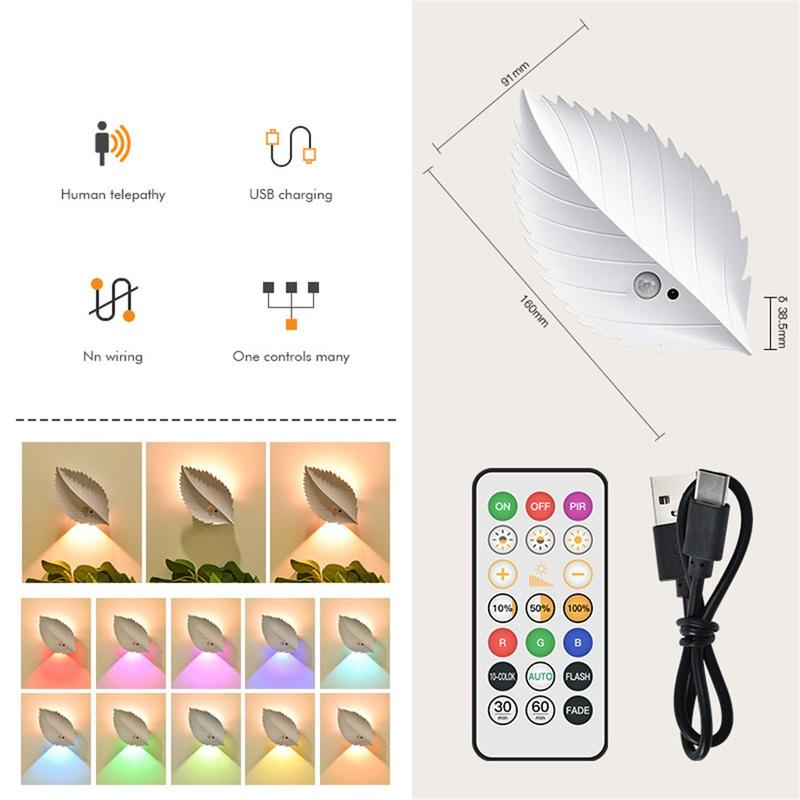 RGBW Rechargeable Leaf Night Light with Motion Sensor and Remote - Magnetic Wall Lamp, Stepless Dimming, 10 Colours, 2000mAh, USB-C