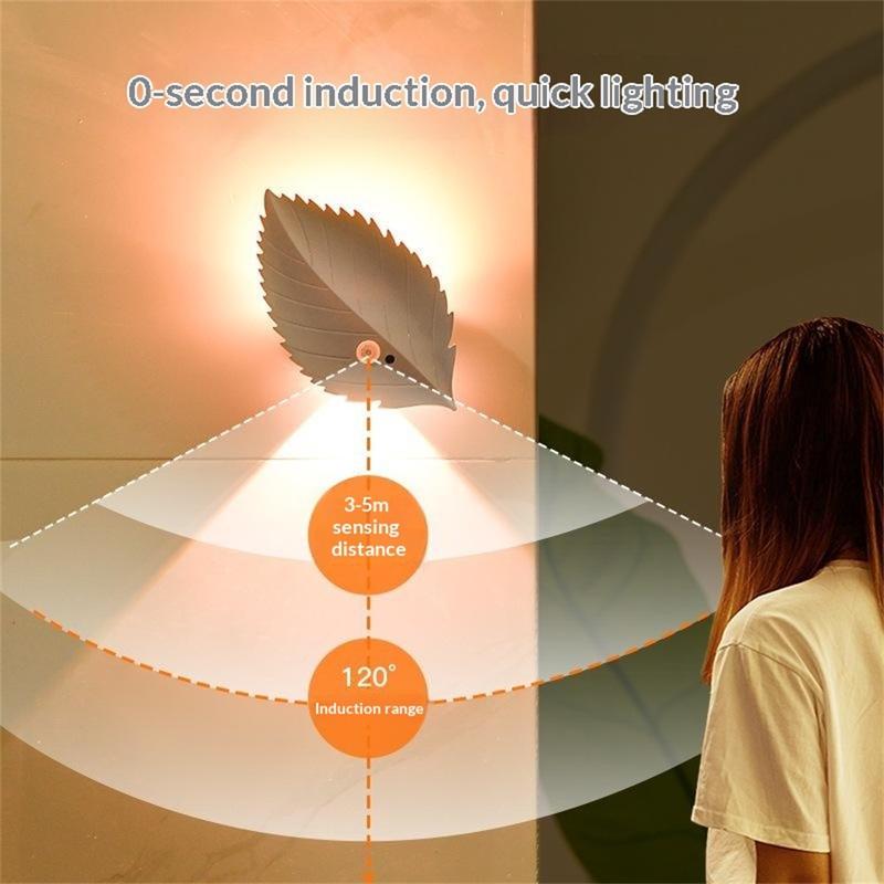 Add a warm, cosy glow to any room with this leaf-shaped RGBW night light-designed to look decorative while giving you practical lighting exactly when you need it. It combines human motion sensing with remote control convenience, so it can turn on automatically as you walk by or be adjusted from bed, sofa, or desk. With stepless dimming and 10 colour options, you can switch from a gentle nightlight to mood lighting for relaxing evenings, kids rooms, or hallway guidance.