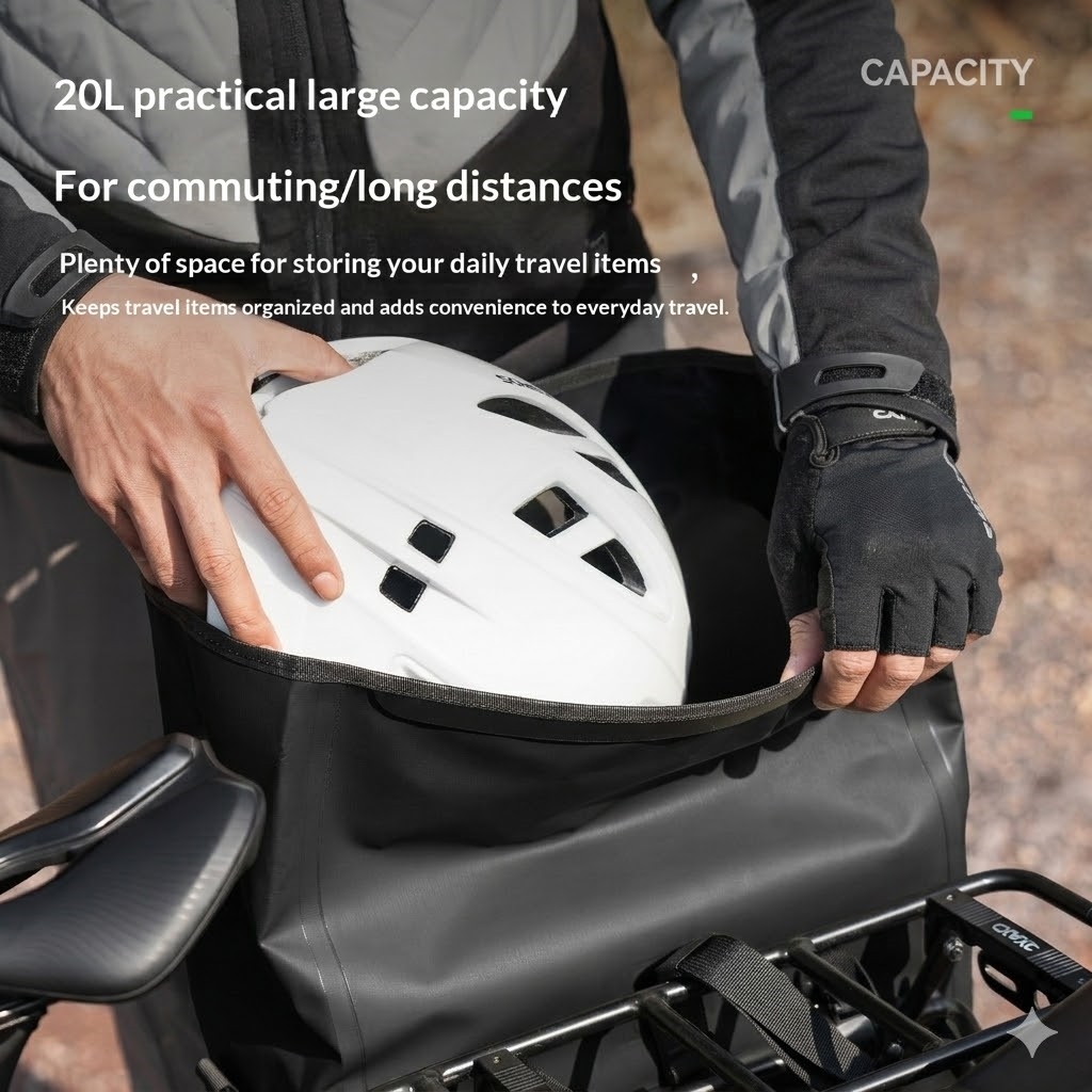 - Large 20L capacity suitable for commuting, shopping, and bike touring