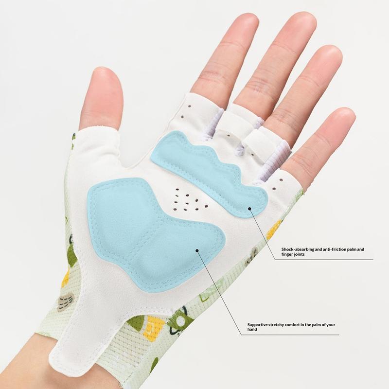 Rockbros Cartoon Pattern Kids Cycling Gloves / Breathable Half-Finger Bike Gloves with Shock-Absorbing Palm