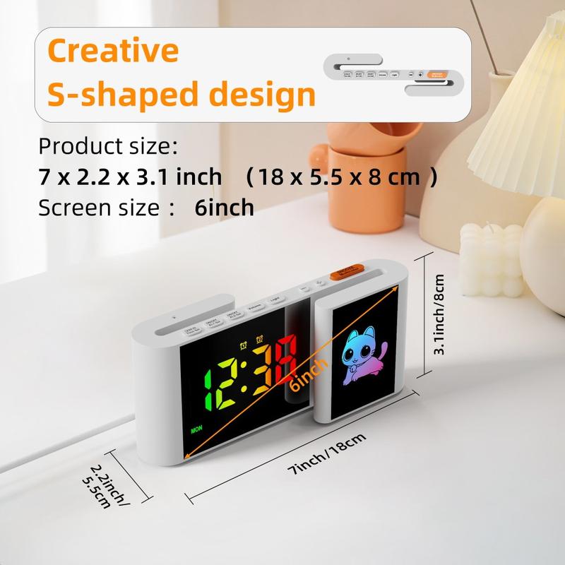 - Unique S-Shaped Dual Screen Design – Creative S-curve layout separates the clock display and night light for a stylish, modern look that enhances any décor.