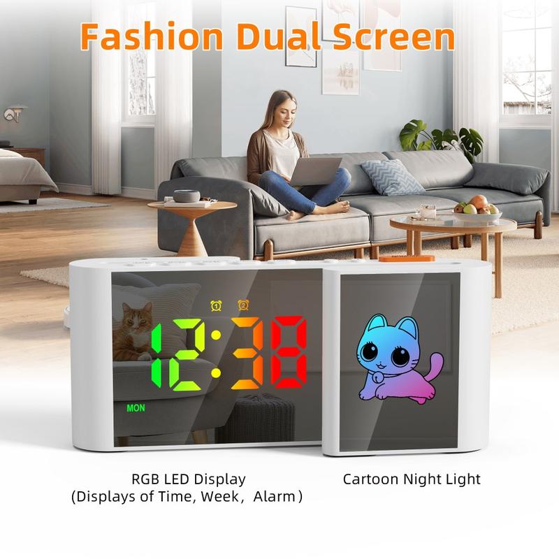 Brighten your mornings and nights with the EN8837-C dual screen RGB alarm clock, a fun and functional desk companion featuring vibrant lighting, dual alarms, and a unique cartoon-inspired design. Perfect for kids’ rooms, offices, or bedside tables, it combines practicality with playful charm.