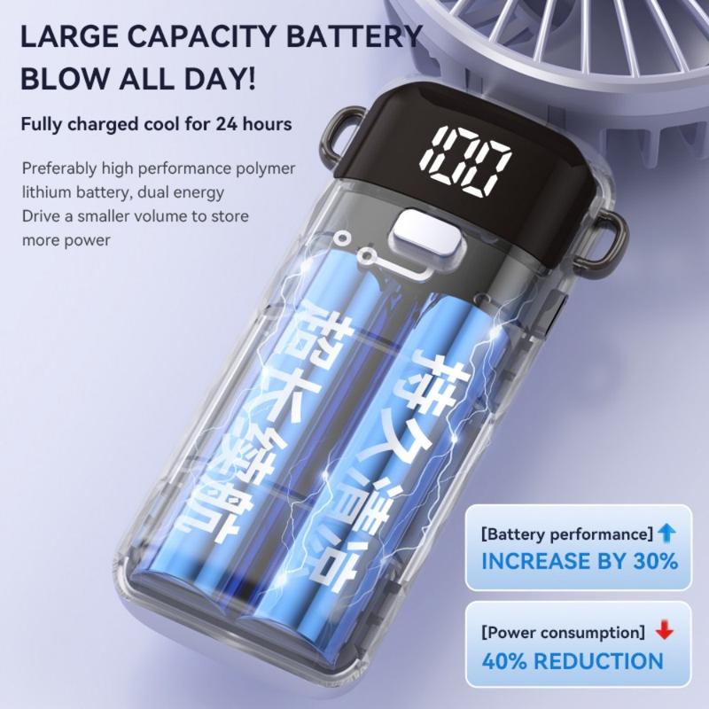 S1 Foldable Handheld Mini Fan with LED Display - 5-Speed Rechargeable Desktop Fan with Type-C Charging
