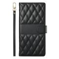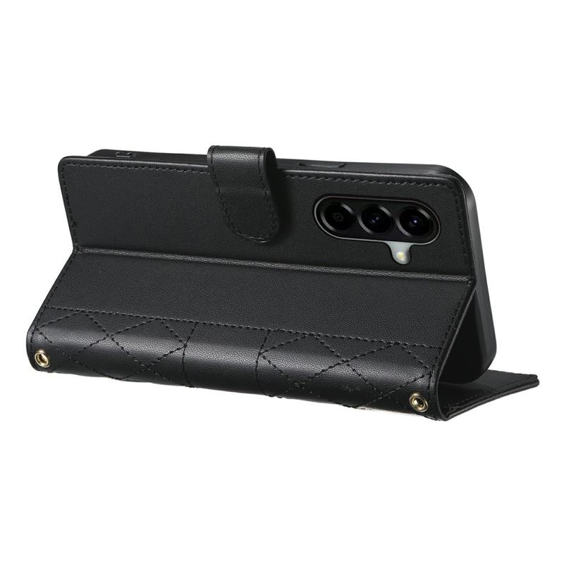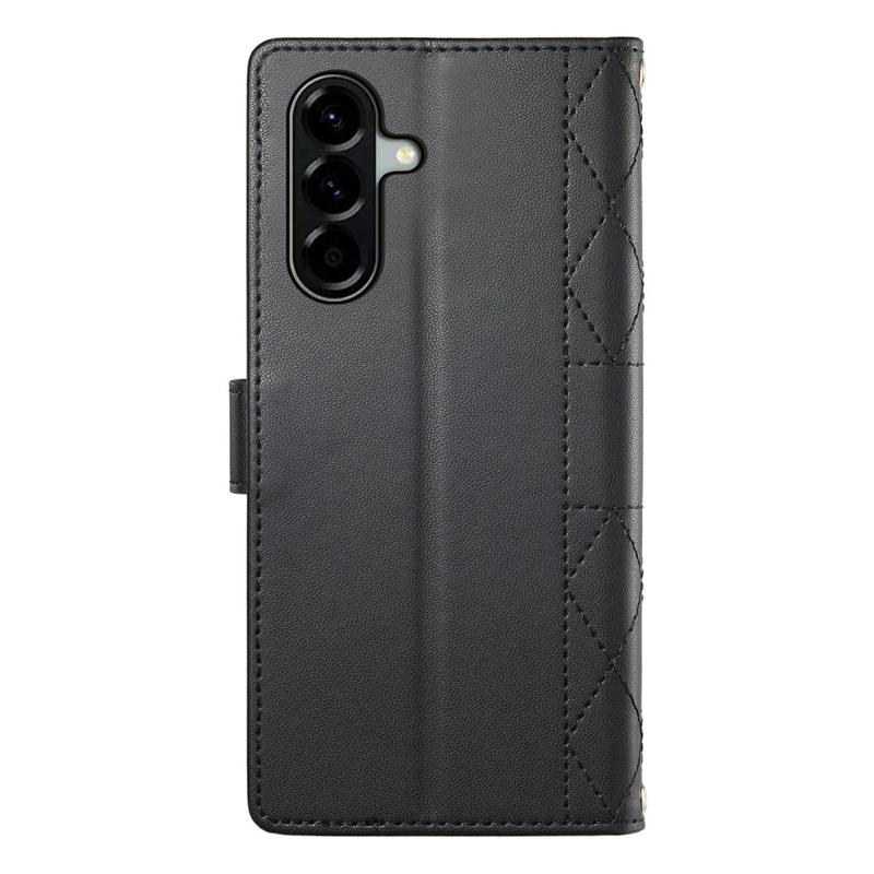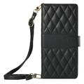 Luxury Quilted Wallet Case with Shoulder & Wrist Strap for Samsung Galaxy A37 - Rhombus Pattern Protective Cover