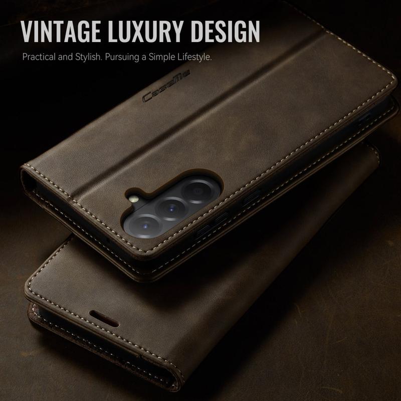 The CASEME 033 Series Wallet Case for Samsung Galaxy A57 is crafted from calf texture polyurethane combined with TPU, offering full-body protection against scratches, impacts, and daily wear while maintaining a premium, elegant look.