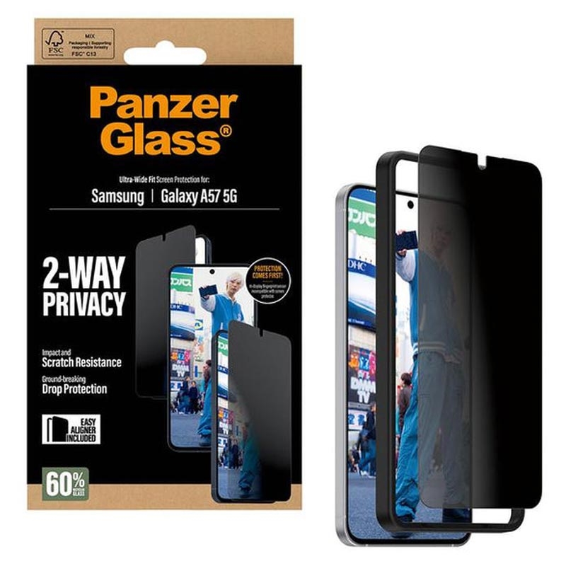 - PanzerGlass Ultra-Wide Fit Privacy EasyAligner Screen Protector is NOT compatible with Samsung Galaxy A57 fingerprint sensor