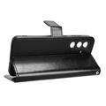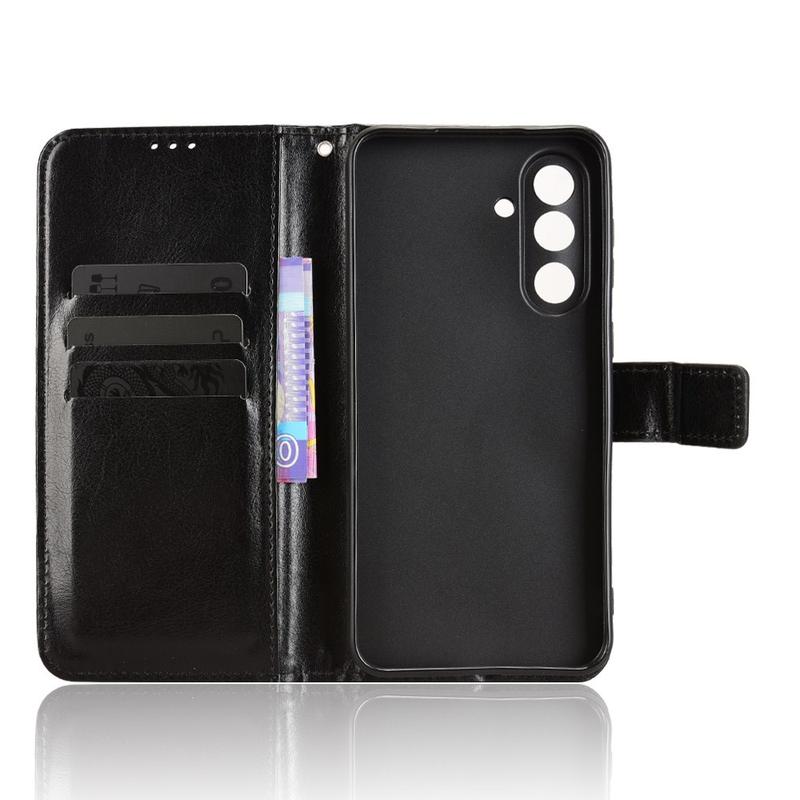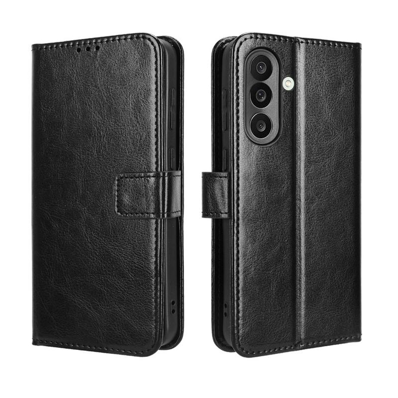 Give your new Samsung Galaxy M56 a refined, vintage look while replacing your everyday wallet. The Crazy Horse-textured polyurethane exterior pairs with a shock-absorbing TPU shell to guard against drops and scratches, while clever pockets keep cards and cash organised.